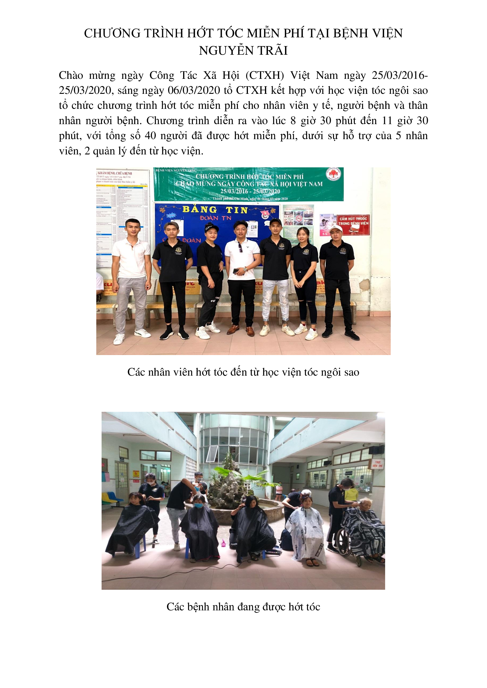CHƯƠNG TRÌNH HỚT TÓC MIỄN PHÍ TẠI BỆNH VIỆN NGUYỄN TRÃI