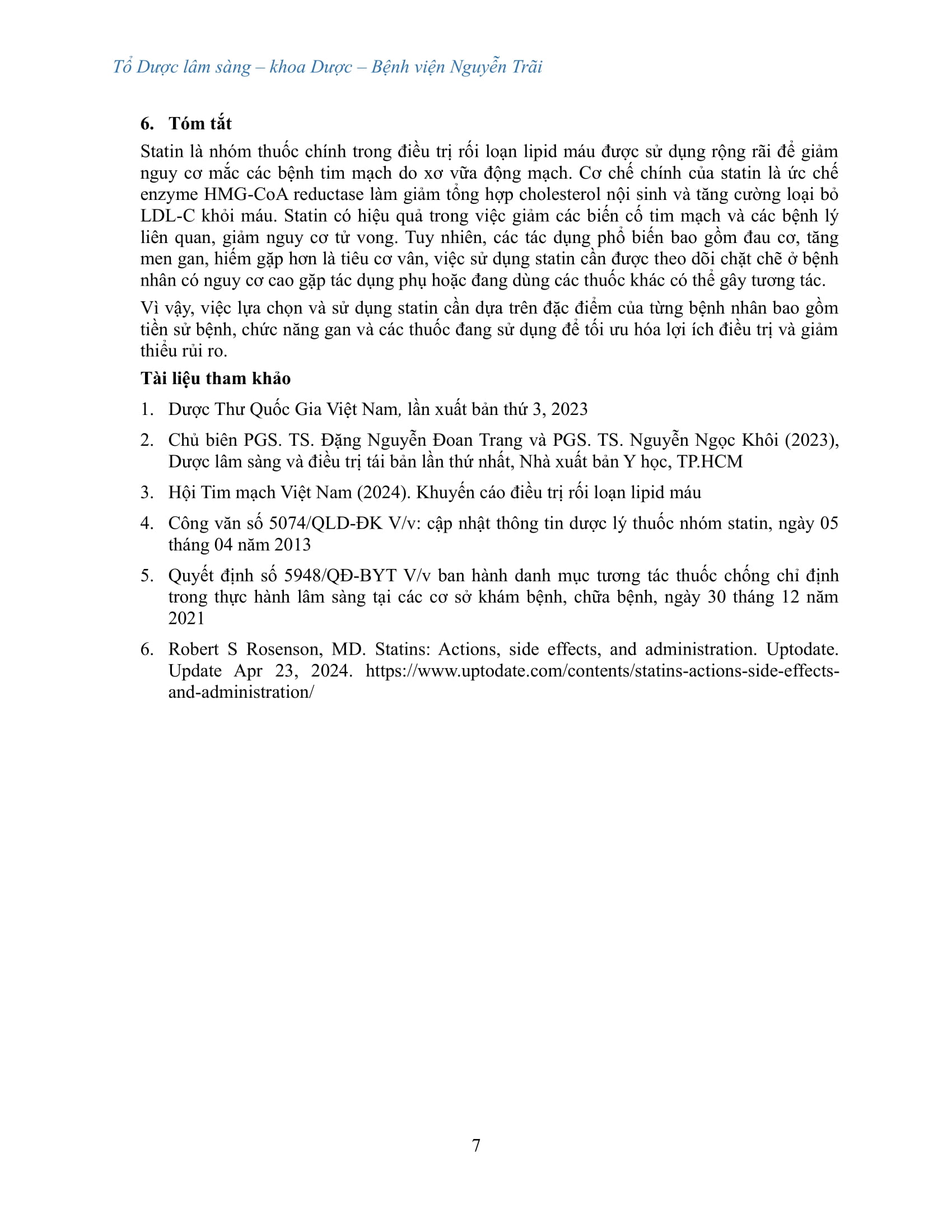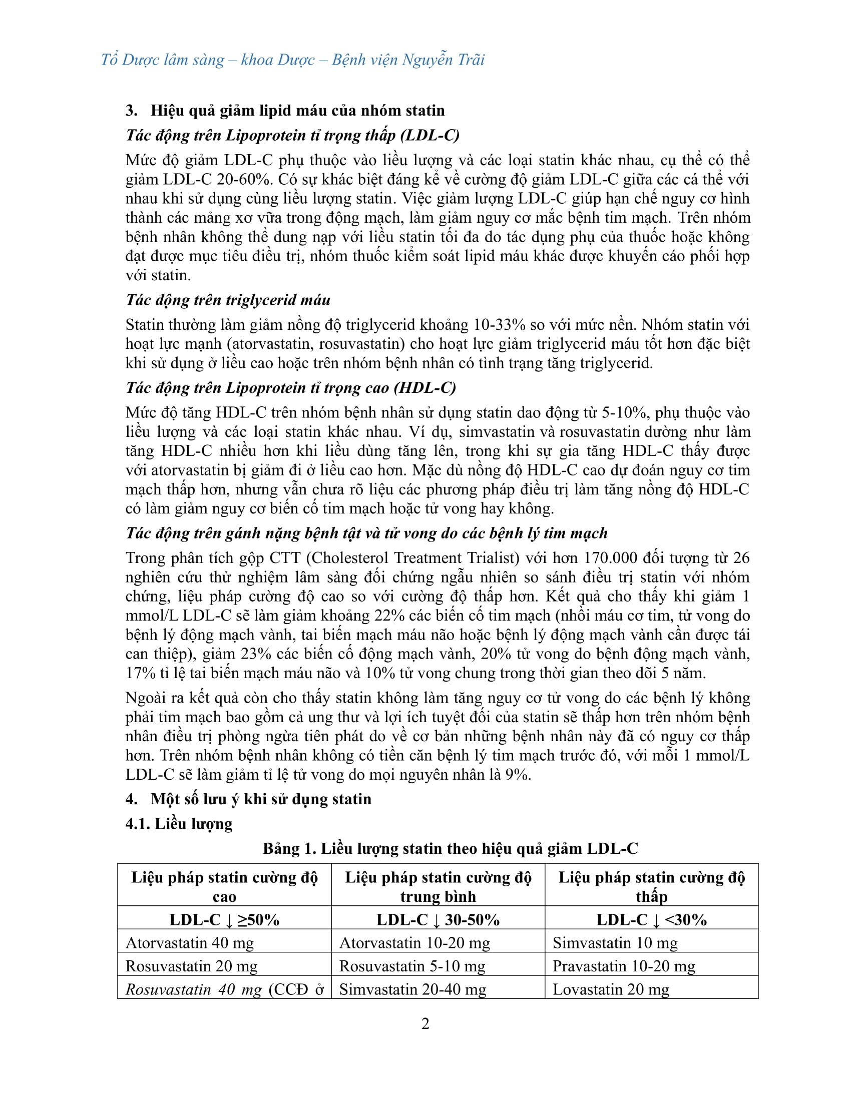 Bản thông tin thuốc: “SATIN lựa chọn đầu tay trong điều trị rối loạn lipid máu “