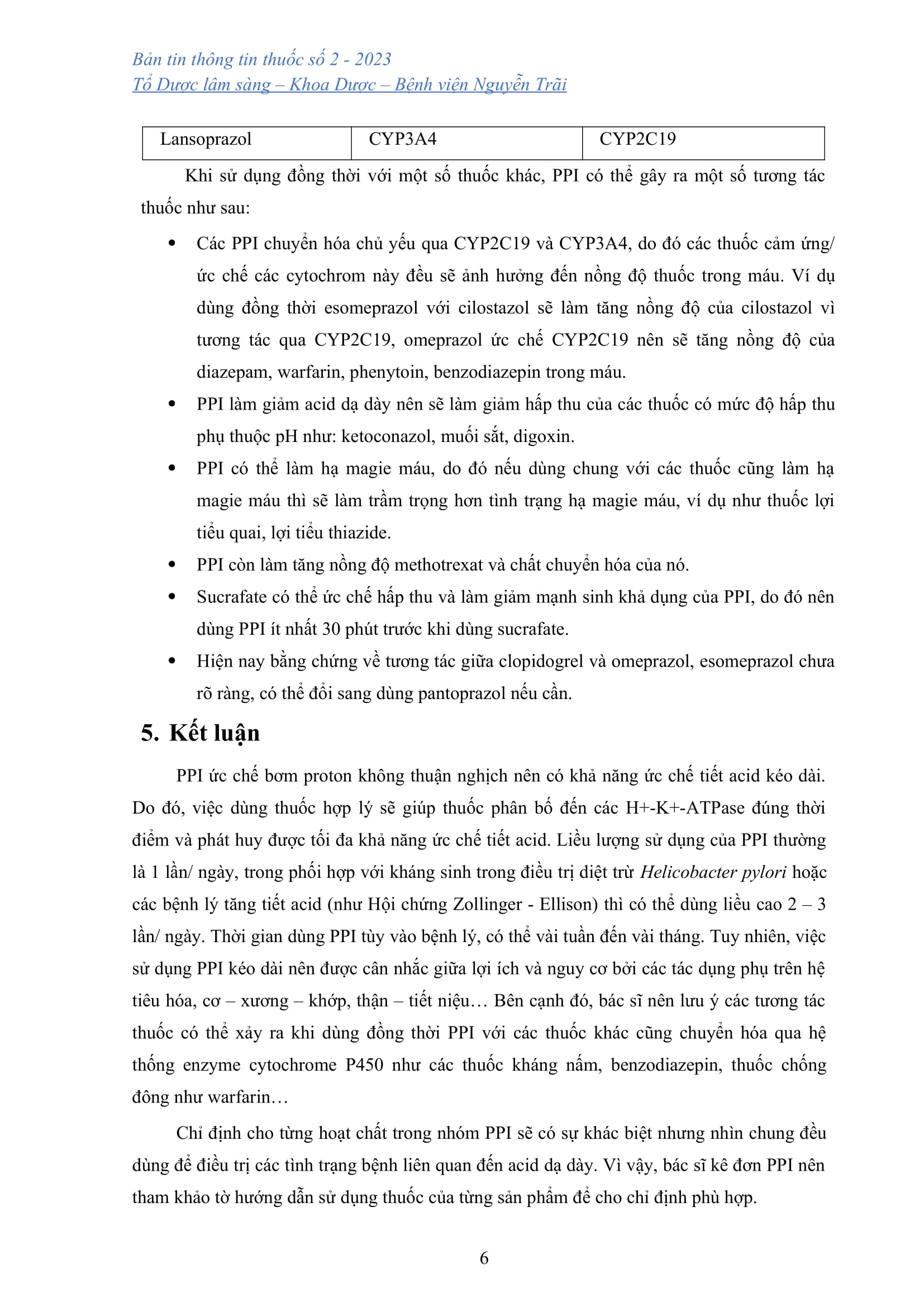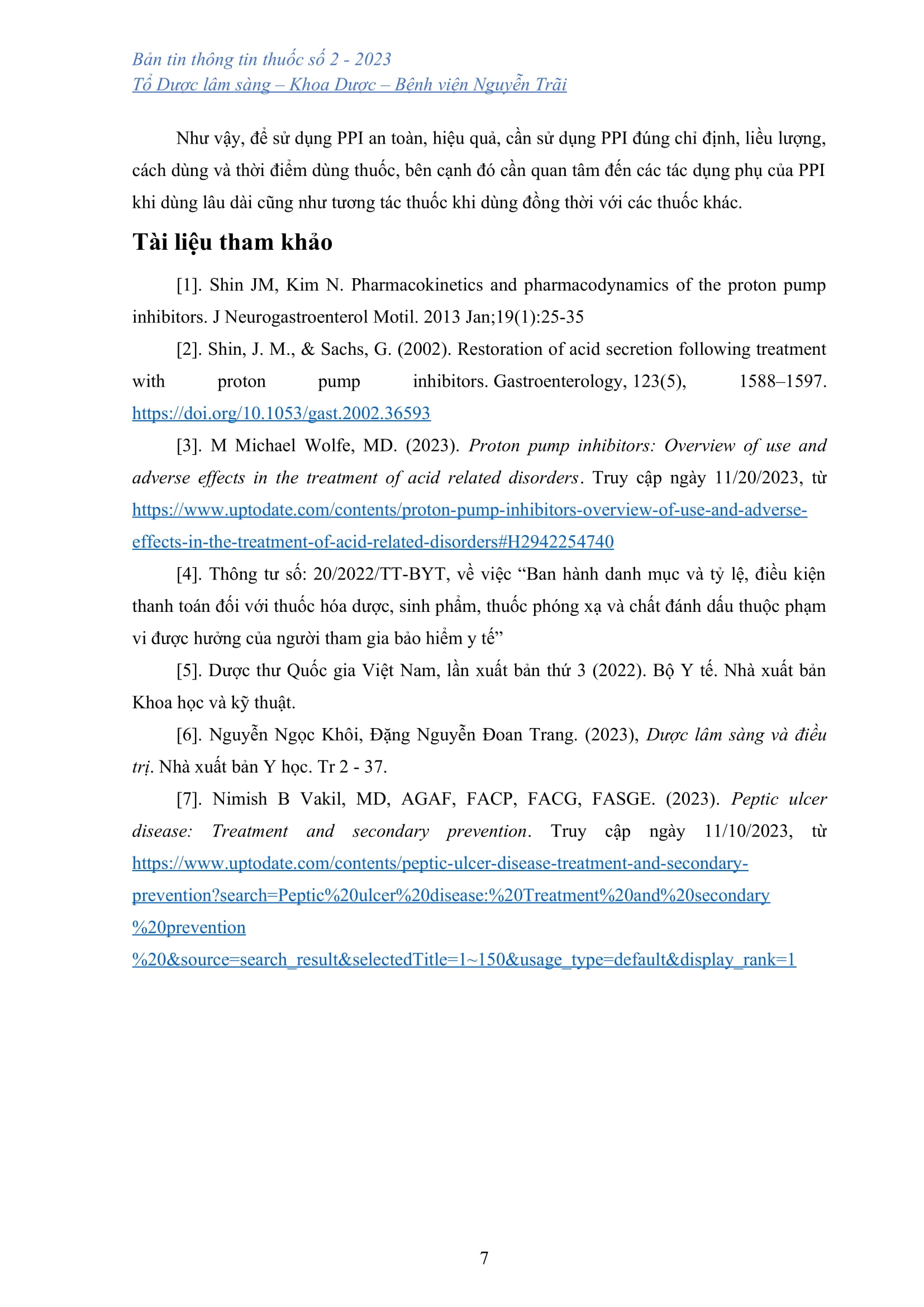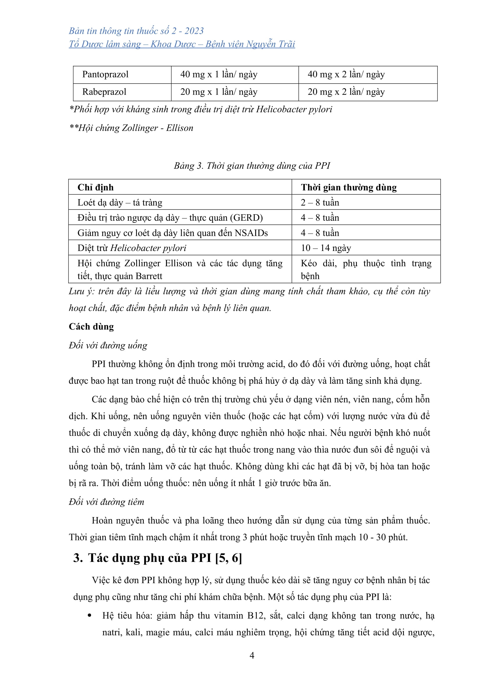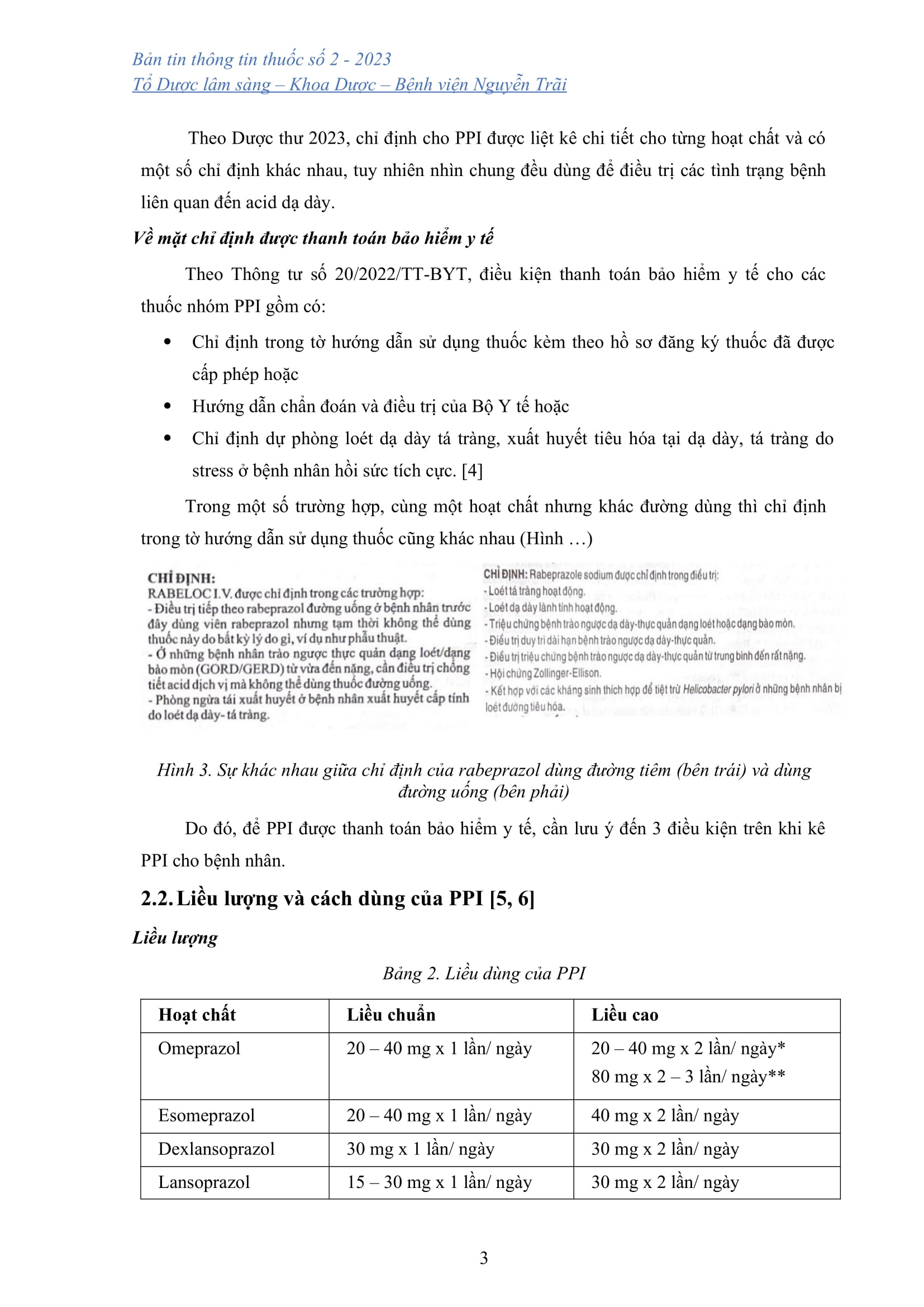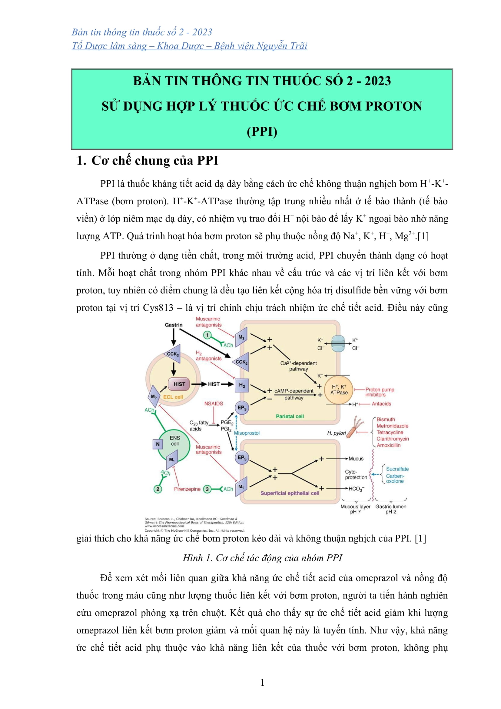 Bản tin thông tin thuốc số 2 -2023 “Sử dụng hợp lý thuốc ức chế bơm proton (PPI)”