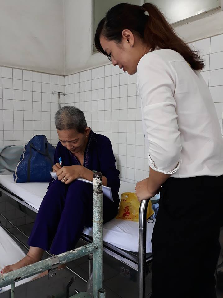 ► Hỗ trợ NB có hoàn cảnh khó khăn: Hỗ trợ kịp thời 2 NB, trường hợp 1: cụ bà P.T.C (88 tuổi) bị bệnh Tăng huyết áp, sống một mình, không có BHYT. Trường hợp 2: Chị T.K.N (41 tuổi), được chẩn đoán mắc nhiều bệnh như: gan nhiễm mỡ, u xơ tử cung…, không có người thân, thường xuyên đau ốm nên tuy có BHYT nhưng khả năng chi trả viện phí bị hạn chế. Với 2 trường hợp này, Tổ đã đến thăm hỏi, tìm hiểu tình hình, sau khi nắm rõ hoàn cảnh khó khăn của NB, Tổ hướng dẫn NB viết đơn xin hỗ trợ tiền viện phí và liên hệ với người nhà NB hoàn thành các thủ tục xin hỗ trợ viện phí. Khi sức khỏe ổn định và được bác sĩ cho xuất viện Tổ đã giúp NB được hỗ trợ một phần viện phí từ Quỹ Hội Chữ Thập Đỏ của bệnh viện. Bên cạnh đó, Tổ không quên nhiệm vụ động viên, khuyên NB giữ gìn sức khỏe, sống lạc quan để phòng ngừa bệnh cũ tái phát.
