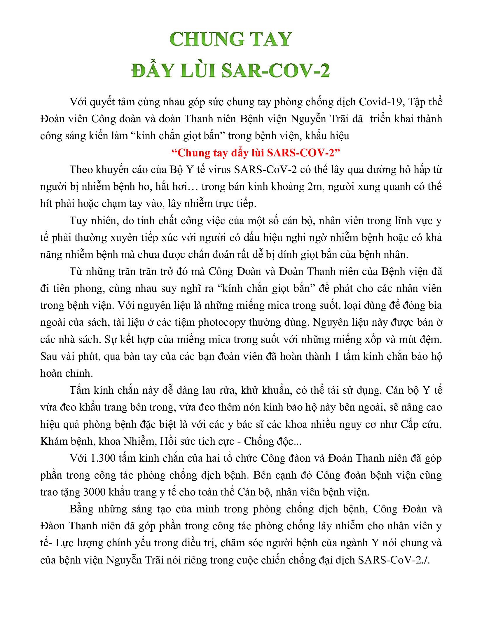 SÁNG KIẾN NHỎ – LỢI ÍCH LỚN – CHUNG TAY ĐẨY LÙI SAR-COV-2