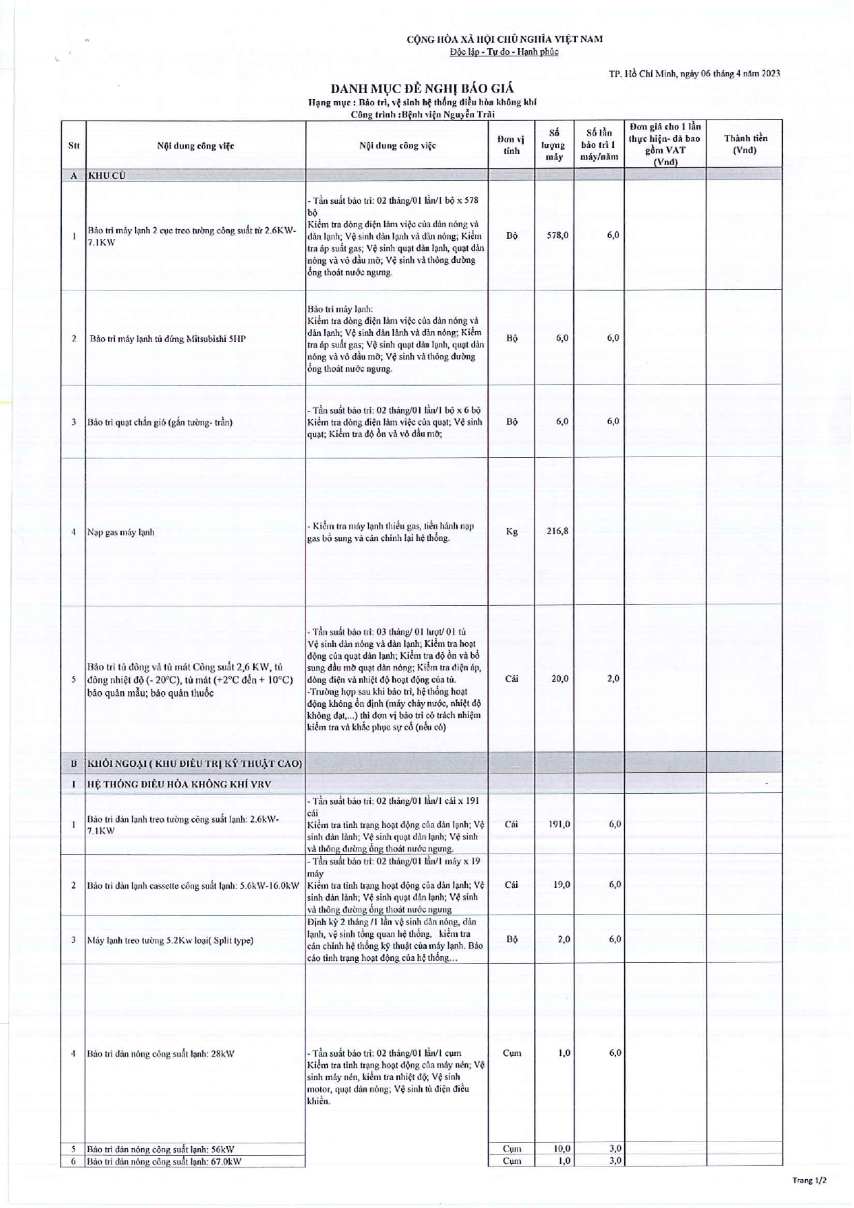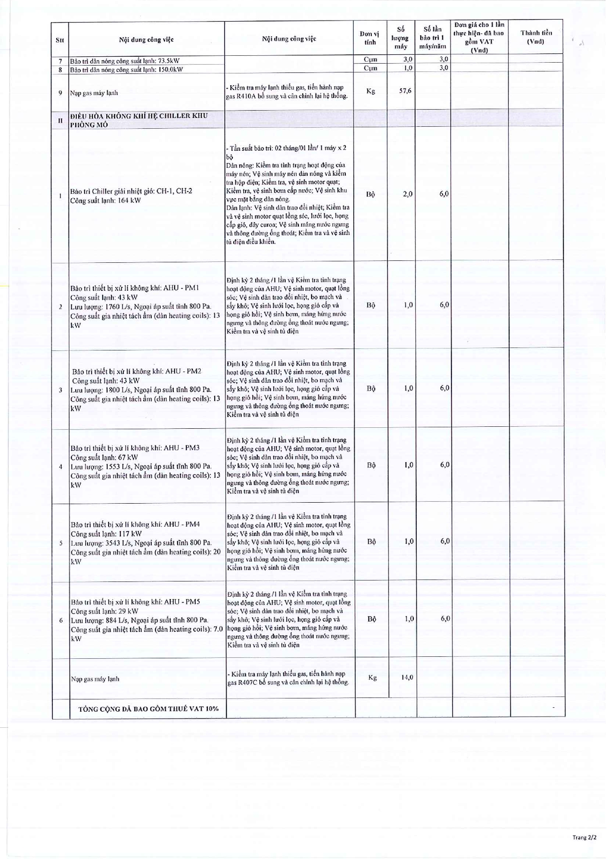 Thư mời chào giá bảo trì, vệ sinh hệ thống điều hòa không khí