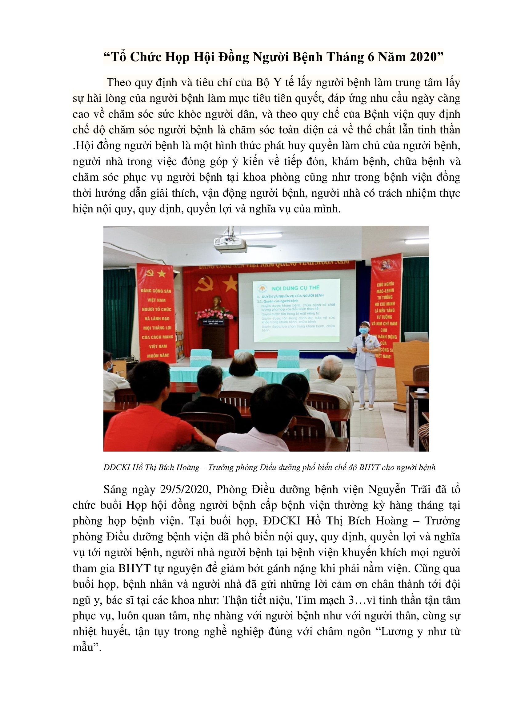 Tổ Chức Họp Hội Đồng Người Bệnh Tháng 6 Năm 2020
