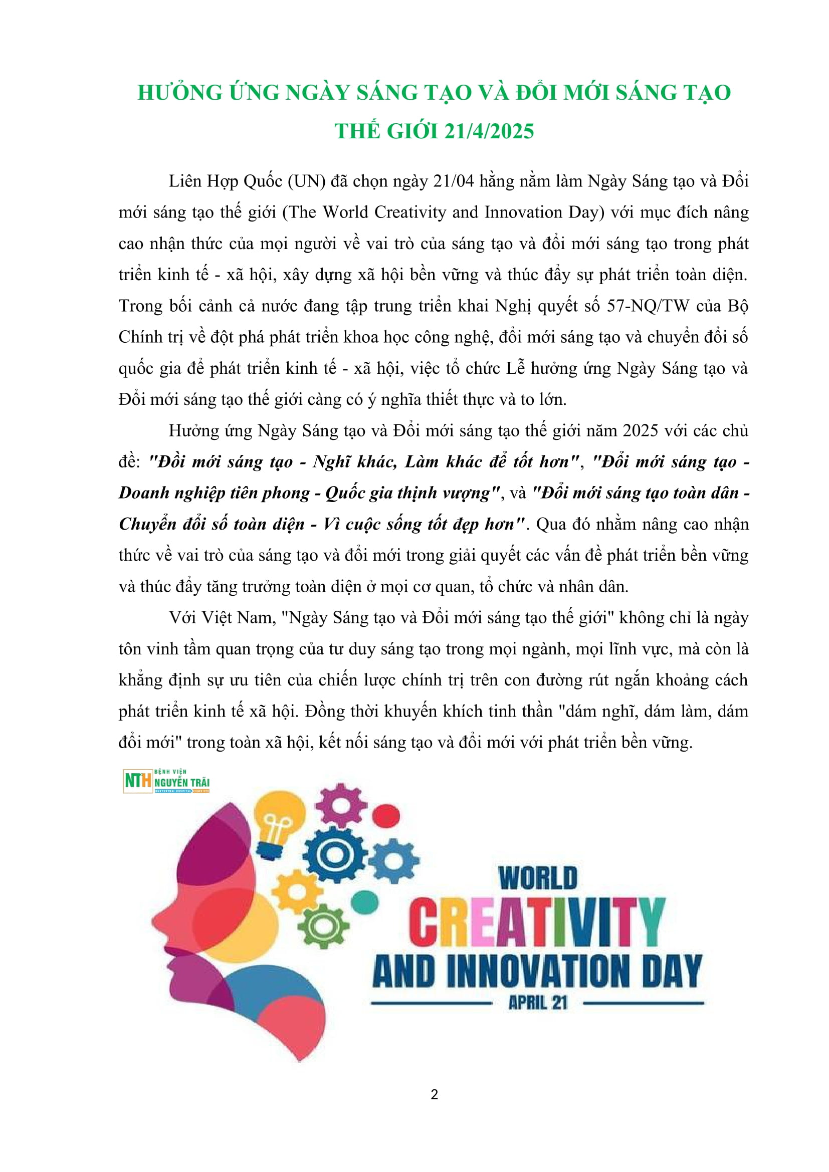 Hưởng ứng ngày sáng tạo và đổi mới sáng tạo thế giới 21/04/2025