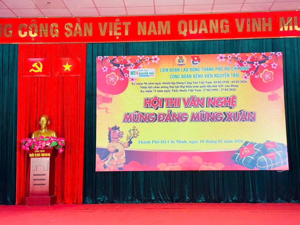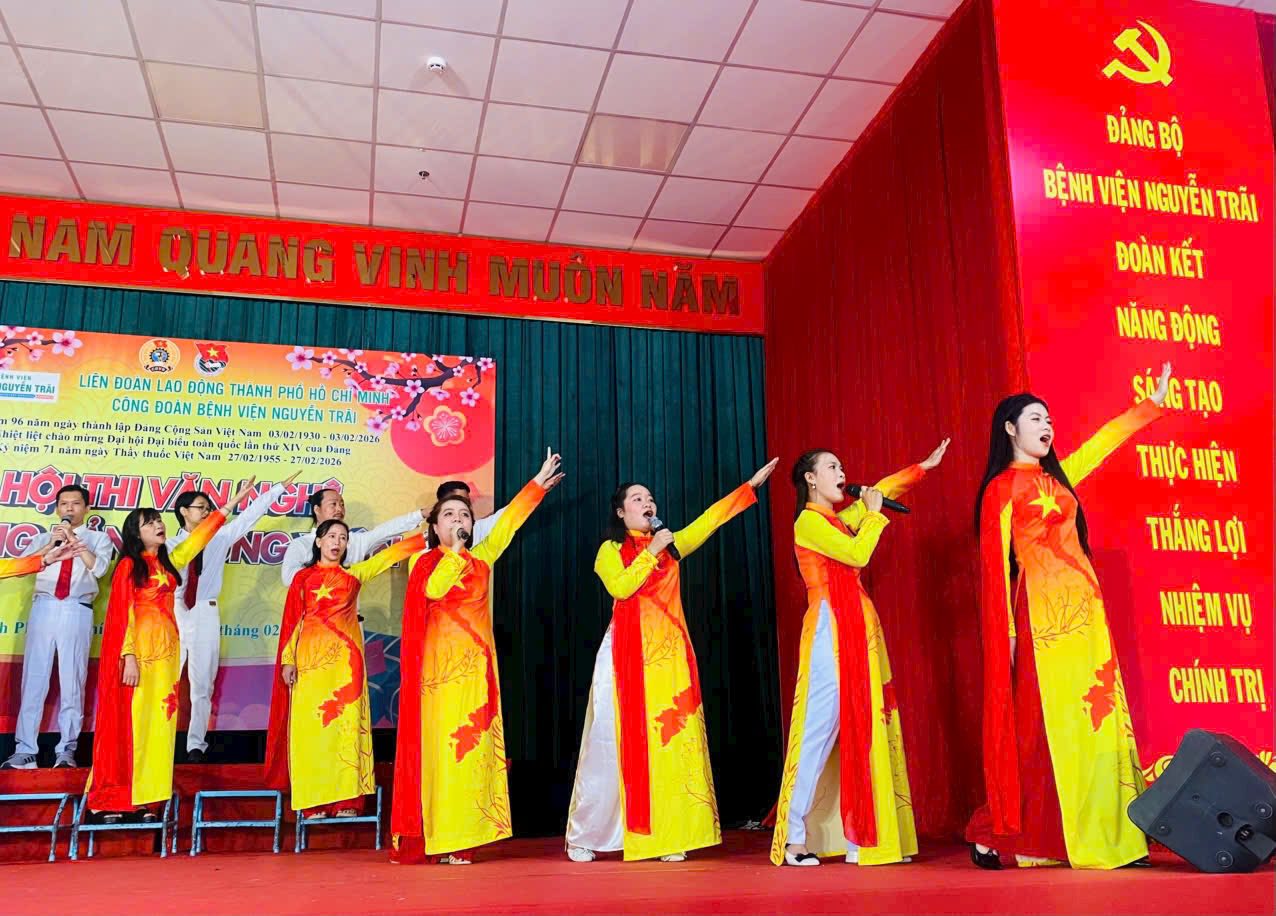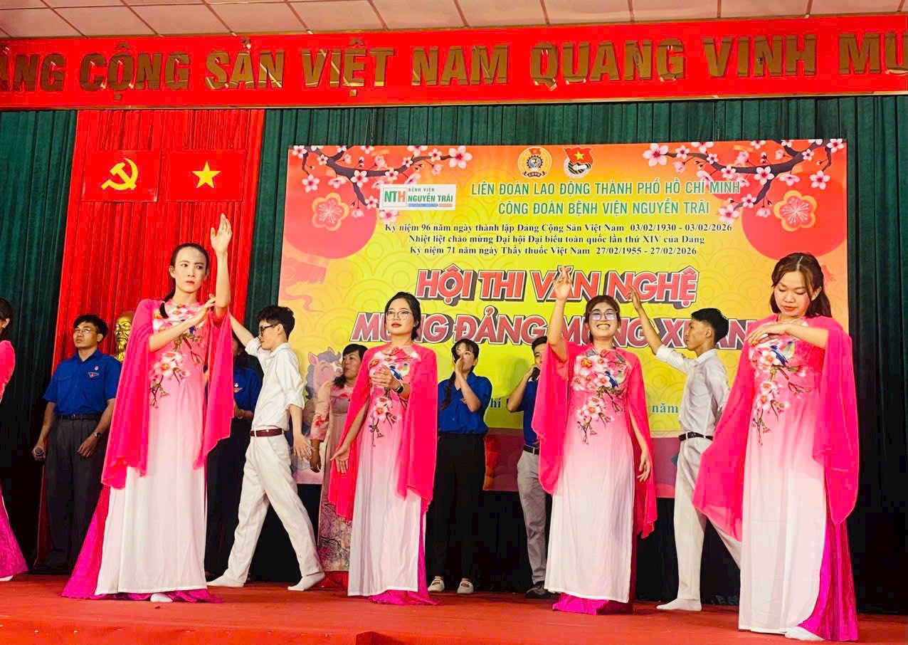 Sáng ngày 10/02/2026, bầu không khí tại Hội trường Bệnh viện Nguyễn Trãi đã thực sự “bùng nổ” với Hội thi Văn nghệ “Mừng Đảng – Mừng Xuân 2026”.