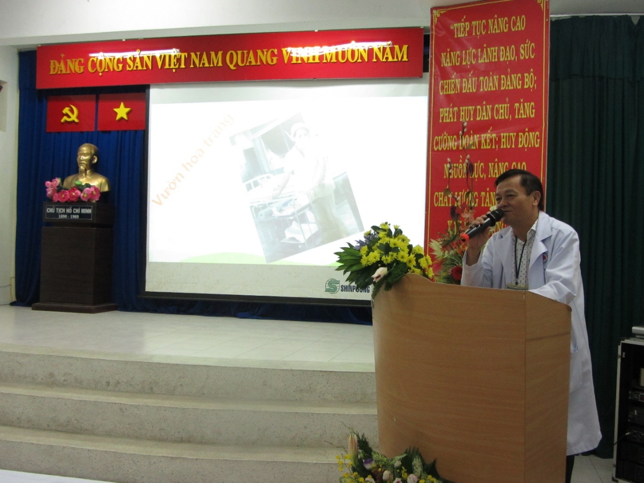 Sau đoạn Video clip, BS.CK II Võ Văn Tiến – Bí thư Đảng ủy – GĐ BV đã phát biểu trước toàn Hội nghị. Giám đốc đã đánh giá cao về công tác hoạt động và thừa nhận sự đóng góp to lớn của đội ngũ Điều Dưỡng trong nhiệm vụ chăm lo cho bệnh nhân, nâng cao uy tín của bệnh viện. “Trong công tác khám chữa bệnh, nếu Bác sĩ điều trị mà không có đội ngũ Điều dưỡng thì công tác điều trị cũng không hoàn thành tốt và người bệnh cũng không được chăm sóc toàn diện”. Bên cạnh đó, Bác sĩ Giám đốc khuyến khích, cán bộ – nhân viên Điều Dưỡng không ngừng học tập, trau dồi kiến thức, nâng cao trình độ chuyên môn, để mang đến sự hỗ trợ tốt nhất cho bệnh nhân.