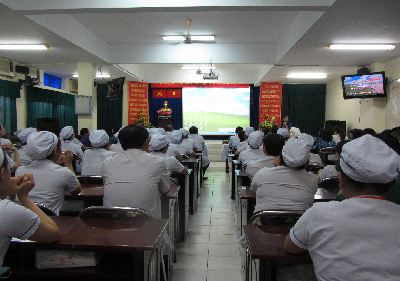 Tiếp đến, toàn thể hội trường được xem đoạn video “Vườn hoa trắng” được thực hiện nhằm chào mừng ngày lễ Quốc tế Điều dưỡng.