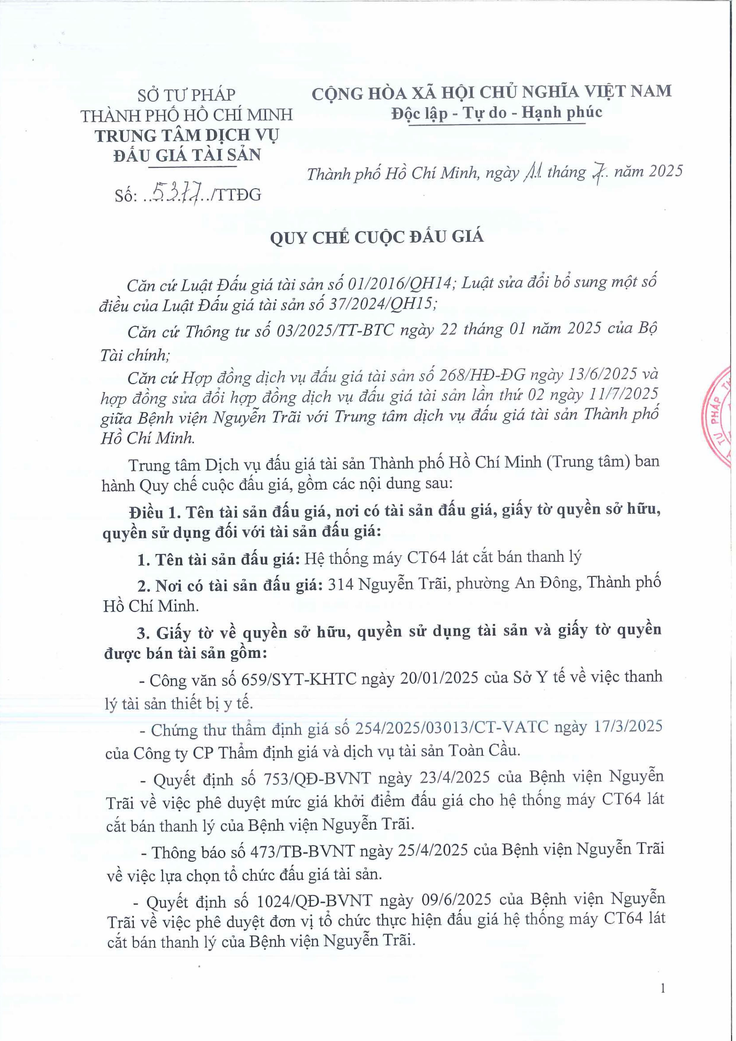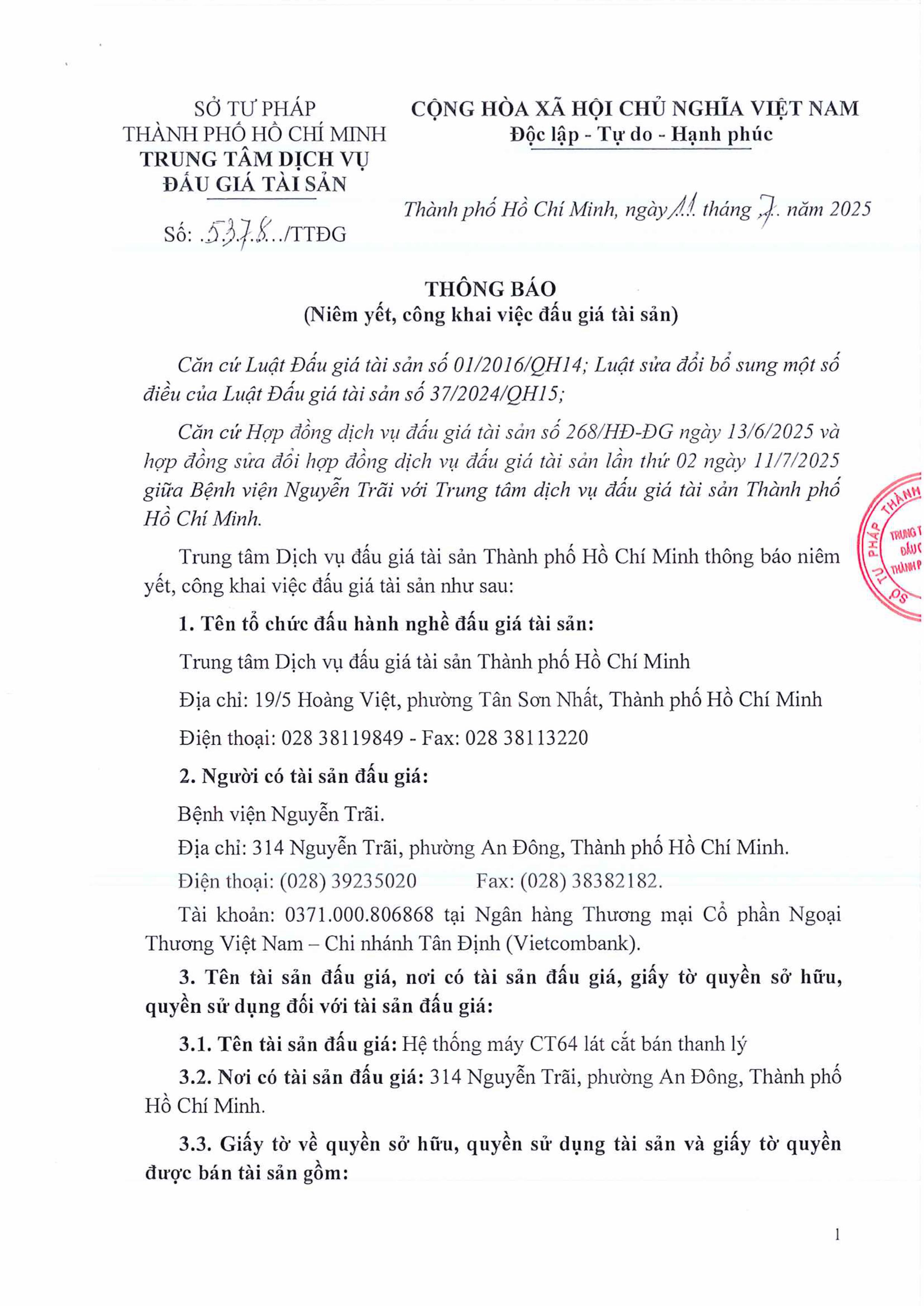 Thông báo đấu giá máy CT64