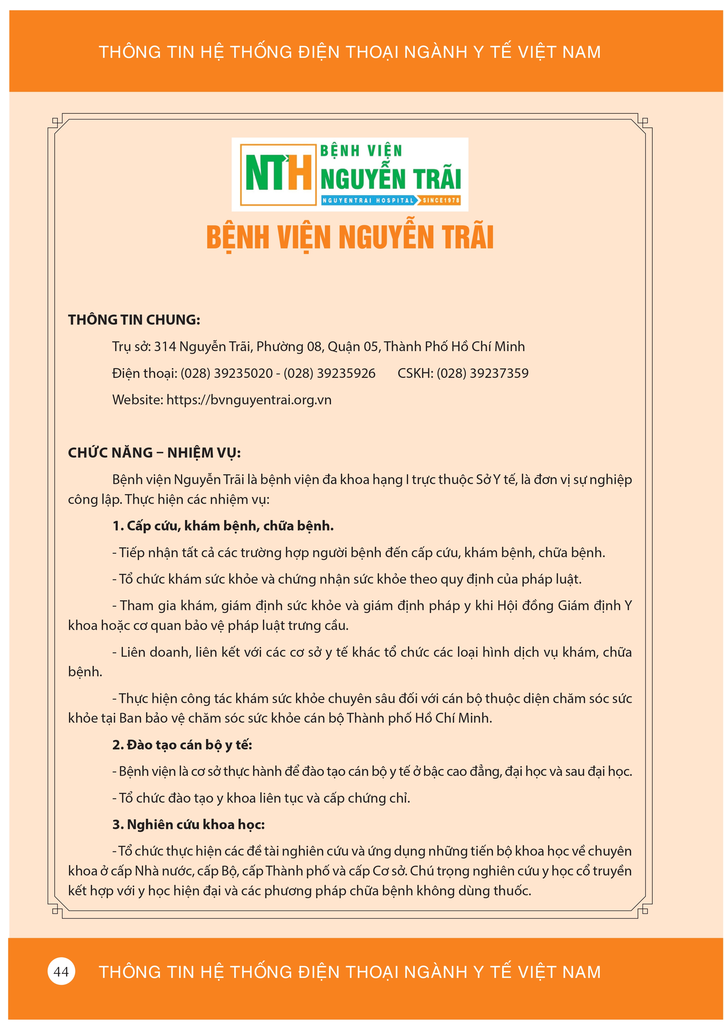 Thông tin hệ thống điện thoại ngành y tế Việt Nam về bệnh viện Nguyễn Trãi