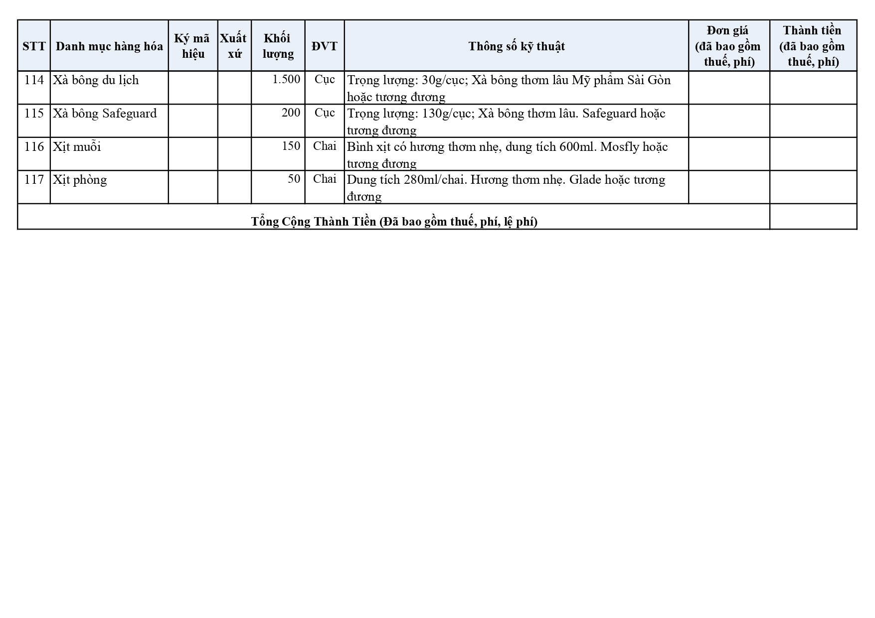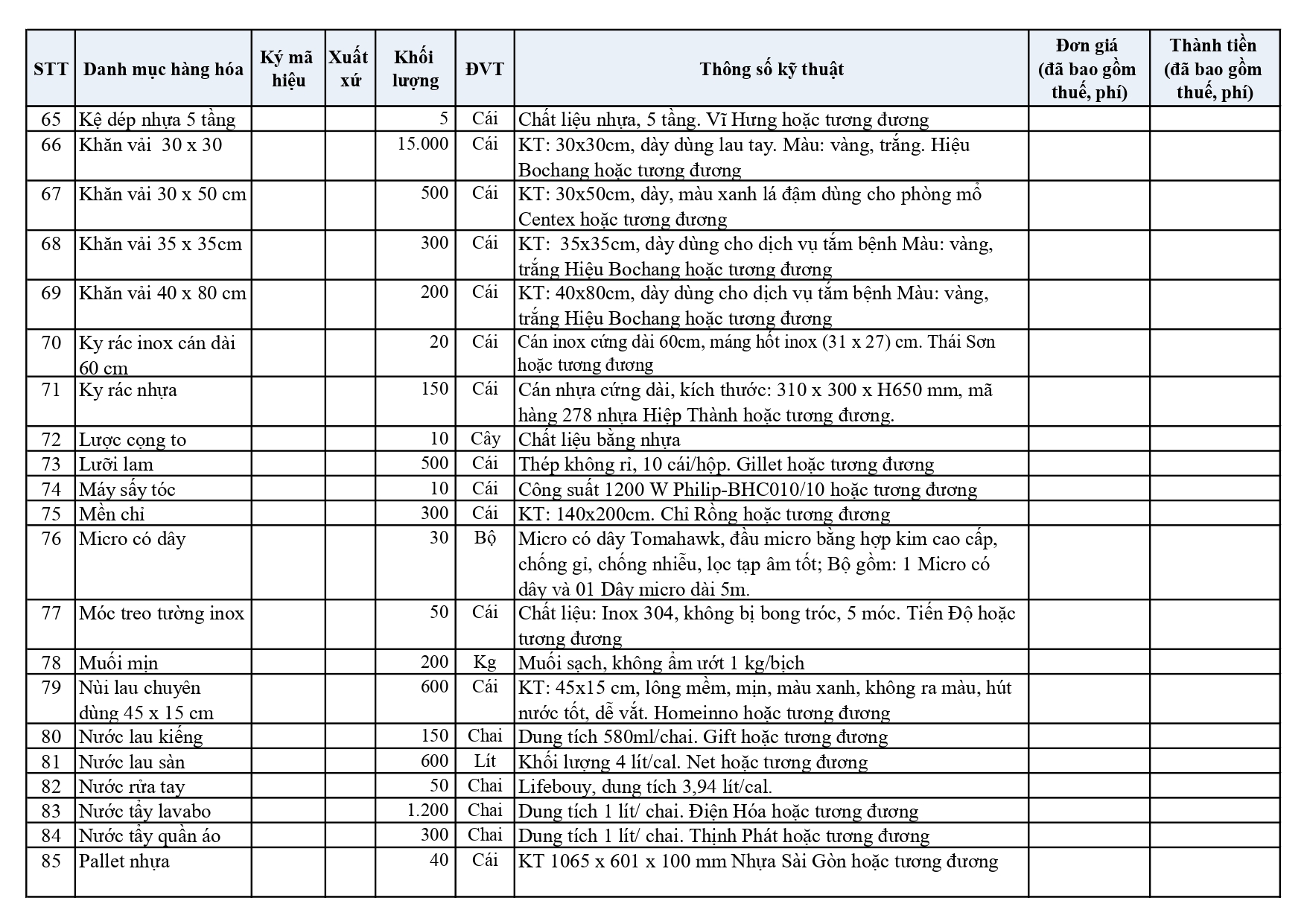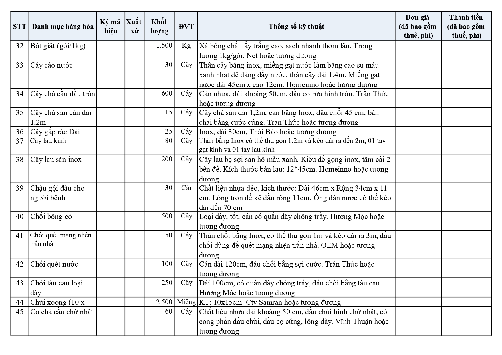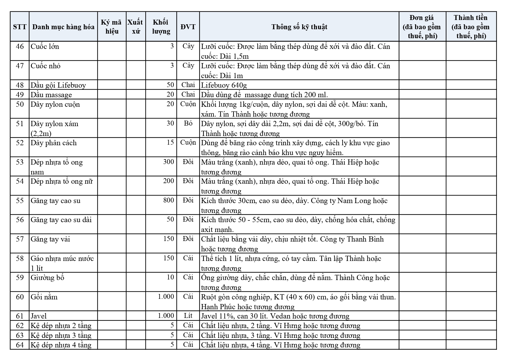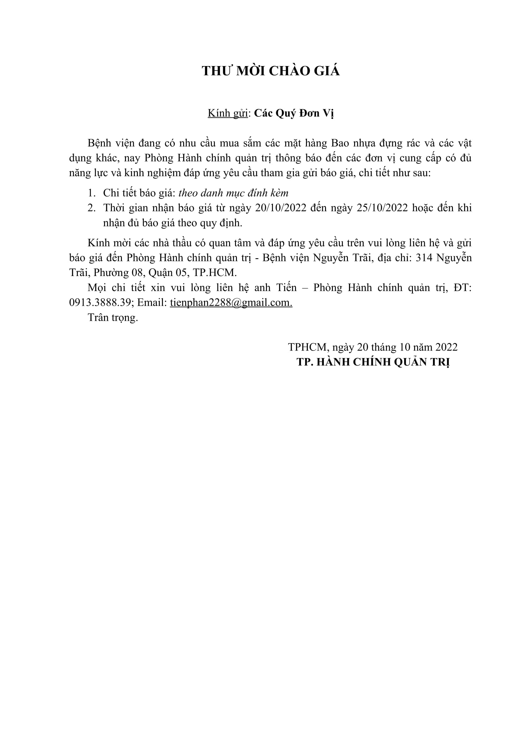 Thư mời chào giá bao đựng rác và các vật dụng khác