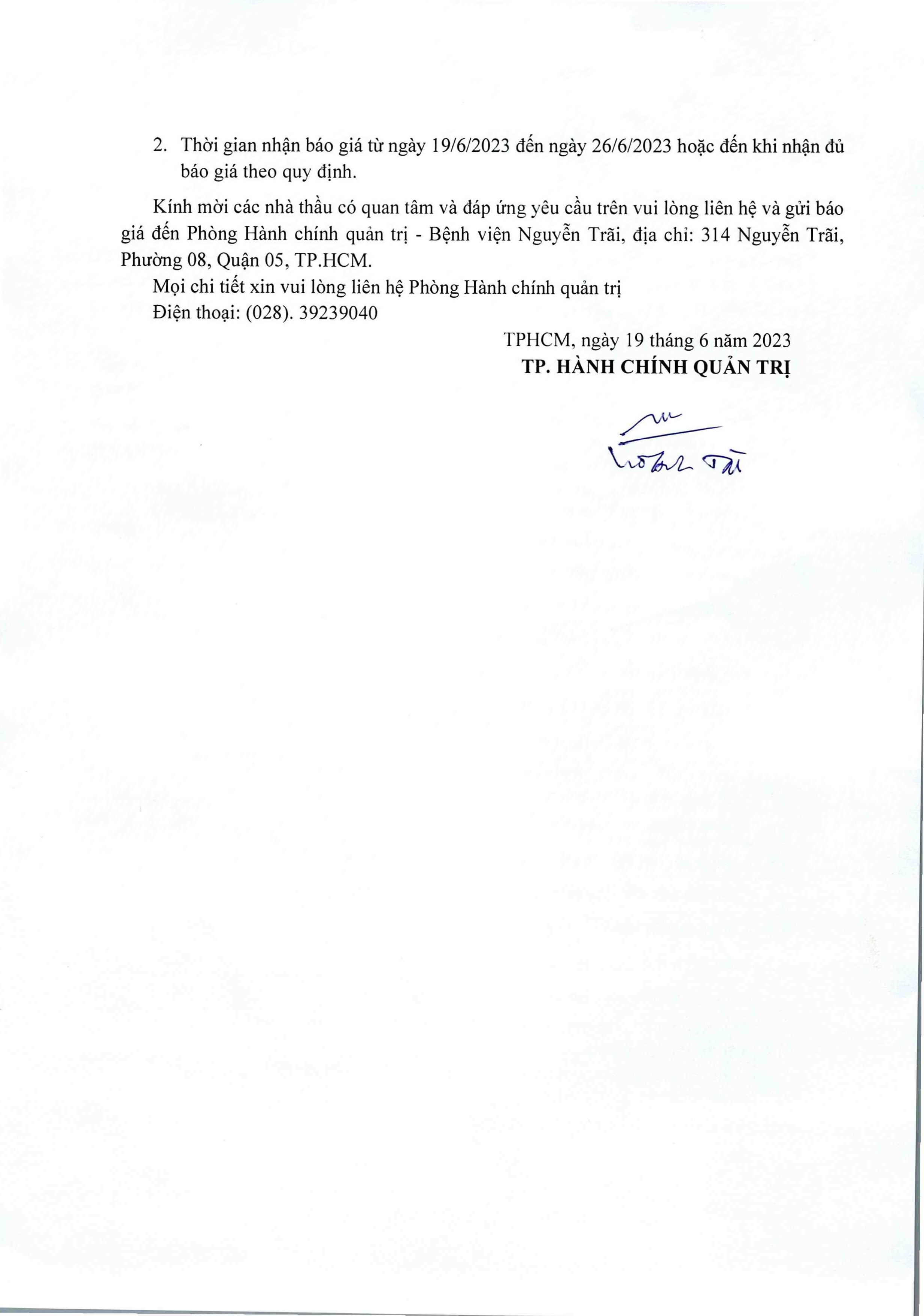 Thư mời chào giá bệnh viện đang có nhu cầu cải tạo, sửa chữa các phòng lầu 2 Khoa Khám Bệnh và chống thấm 2 nhà vệ sinh