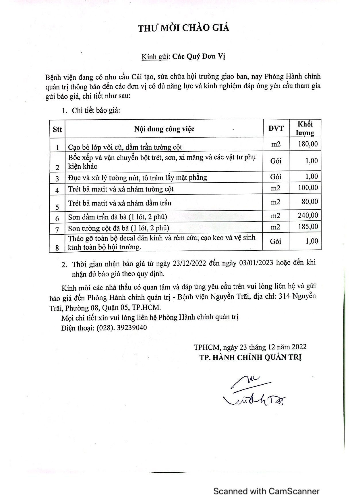 Thư mời chào giá cải tạo, sửa chữa hội trường giao ban