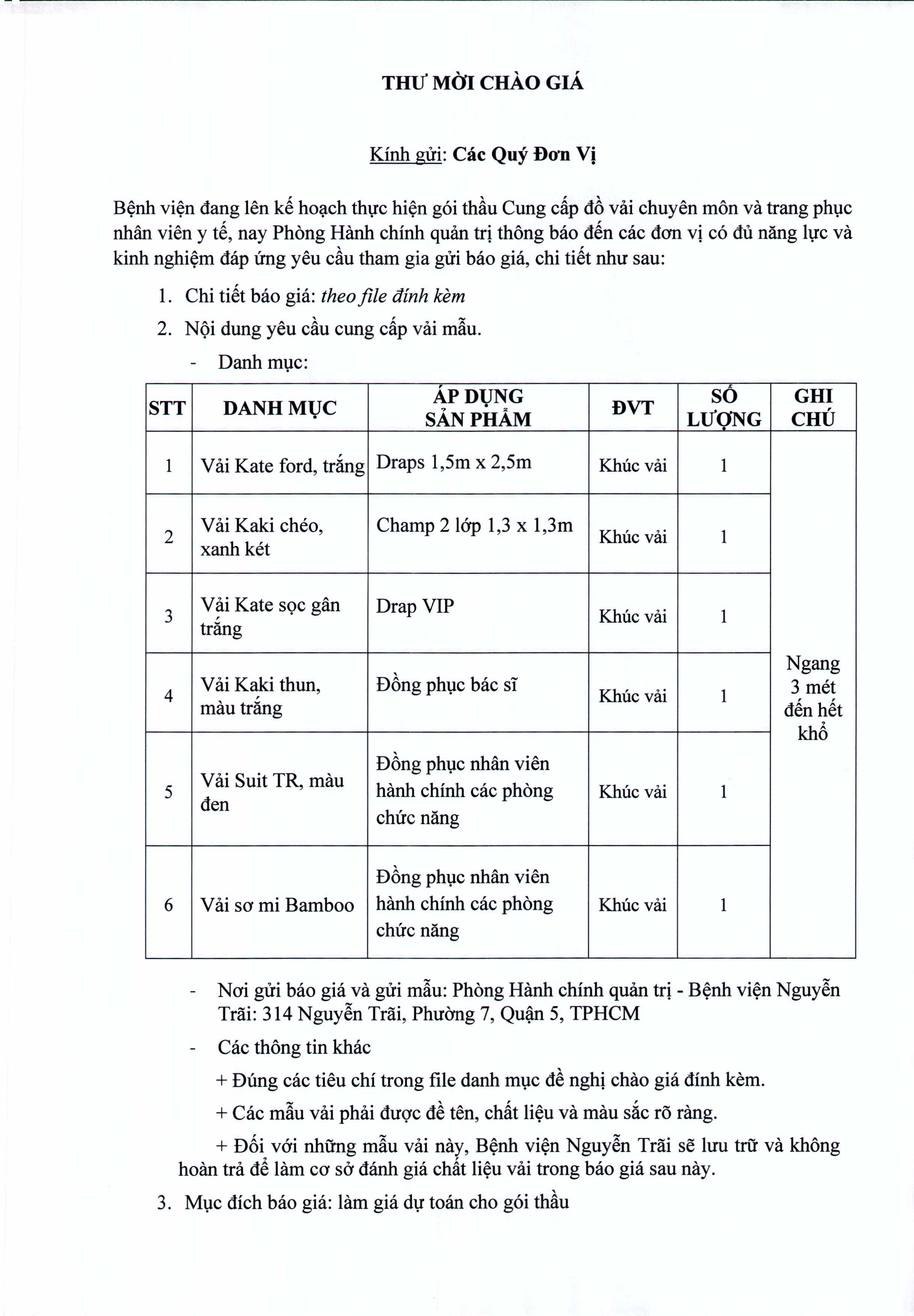 Thư mời chào giá Cung cấp đồ vải chuyên môn và trang phục nhân viên y tế