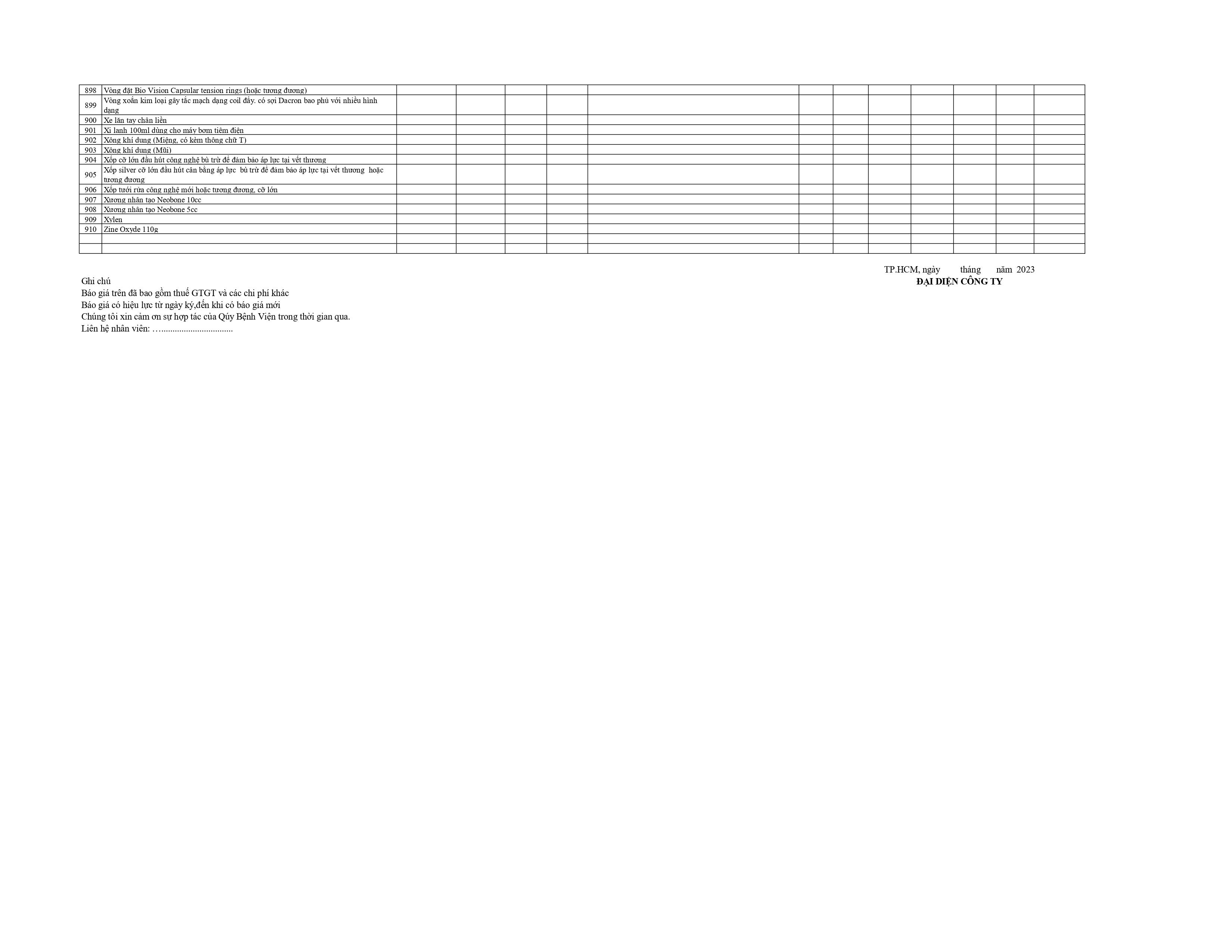 Thư mời chào giá danh mục vật tư y tế năm 2023