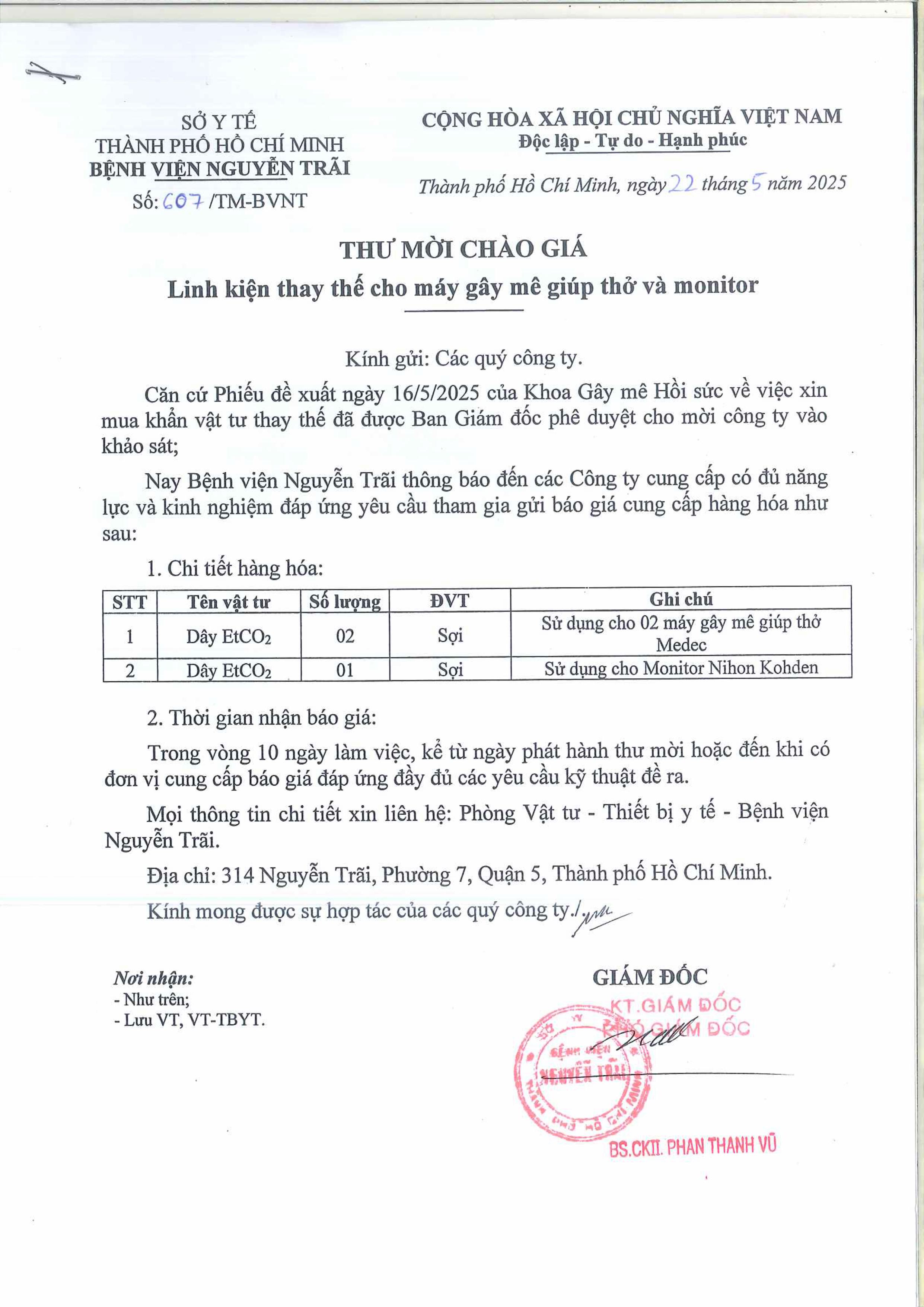 Thư mời chào giá linh kiện thay thế cho máy gây mê giúp thở và monitor