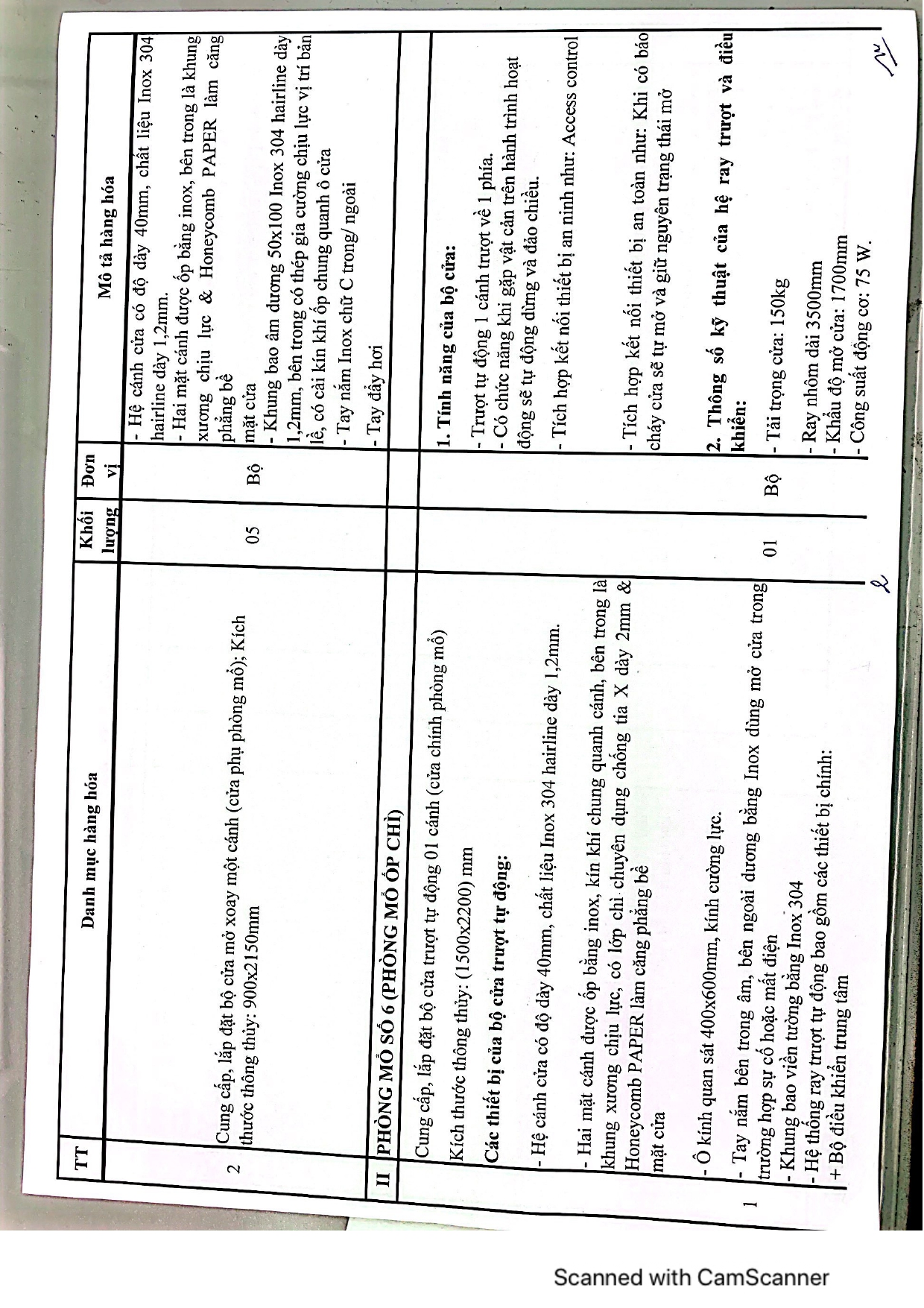 Thư mời chào giá mua sắm 14 bộ cửa phòng mổ khu kỹ thuật cao