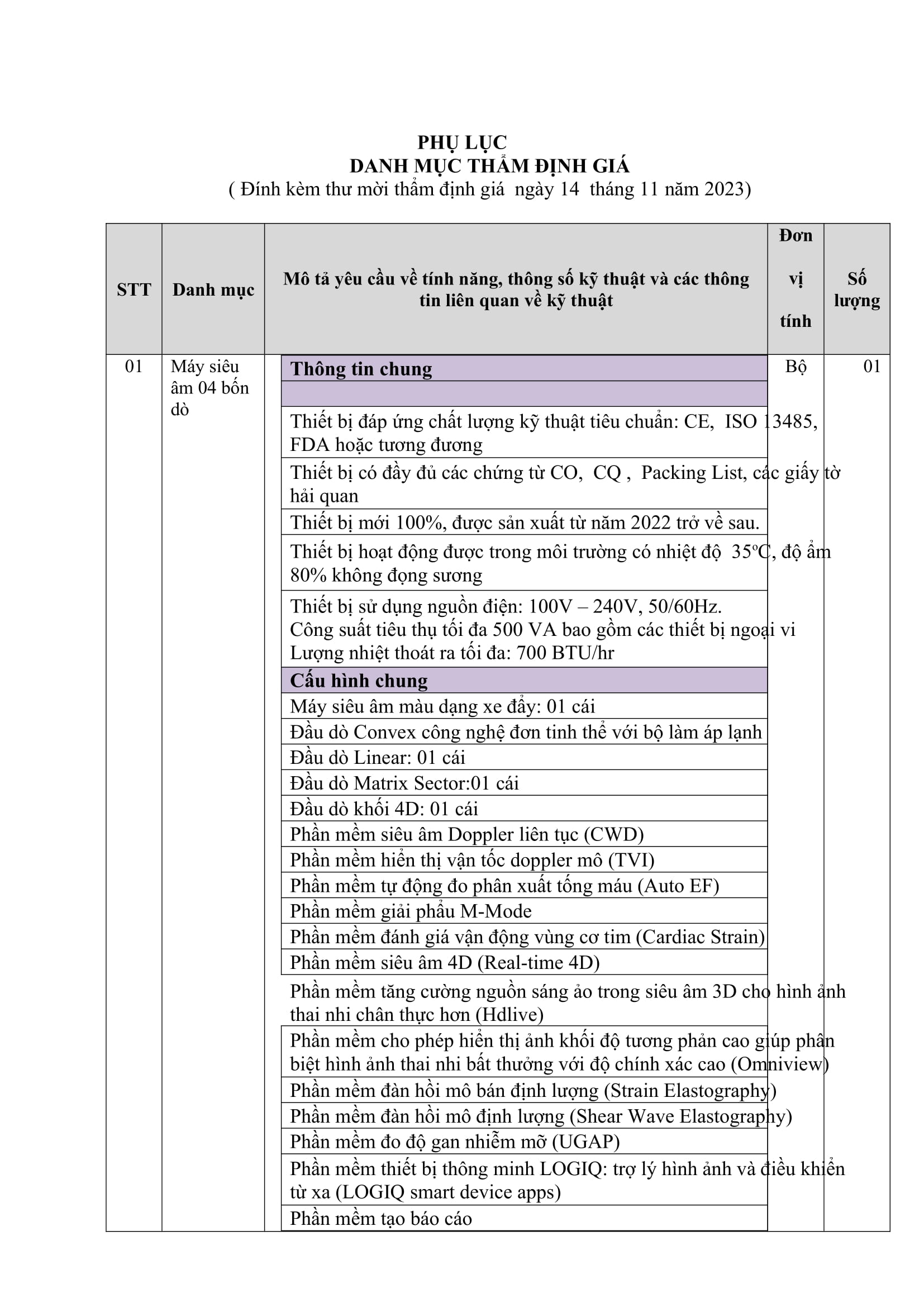 Thư mời chào giá Thẩm định giá gói thầu trang thiết bị y tế năm 2023