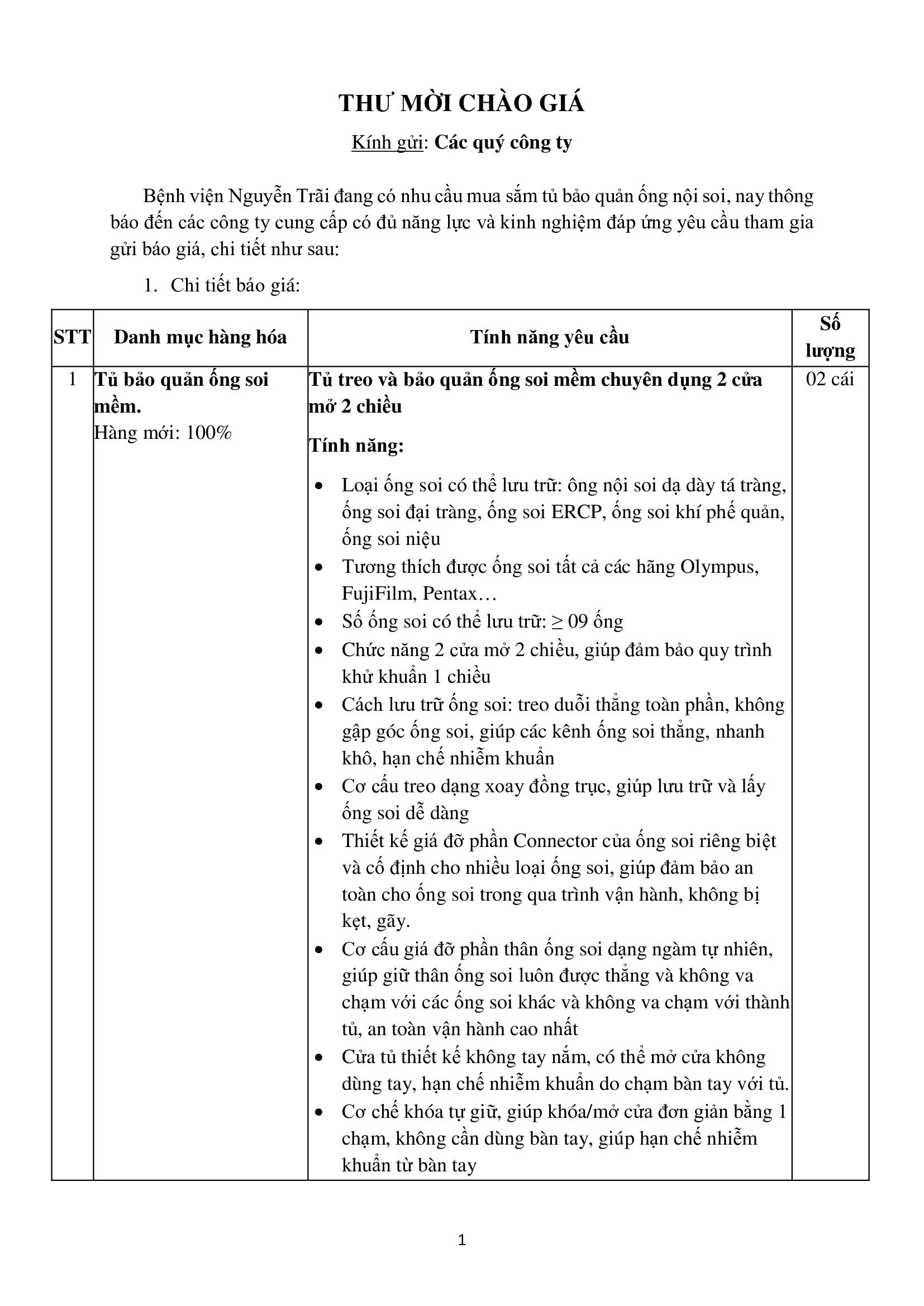 Thư mời chào giá tủ bảo quản ống soi mềm