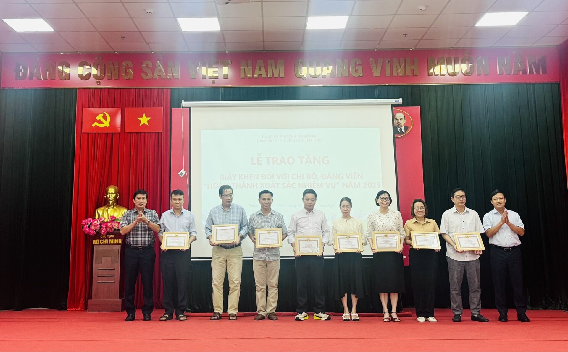 * Giấy khen Đảng bộ: Trao tặng các Chi bộ và cá nhân Đảng viên “Hoàn thành xuất sắc nhiệm vụ”, thể hiện vai trò nòng cốt trong mọi hoạt động của bệnh viện.